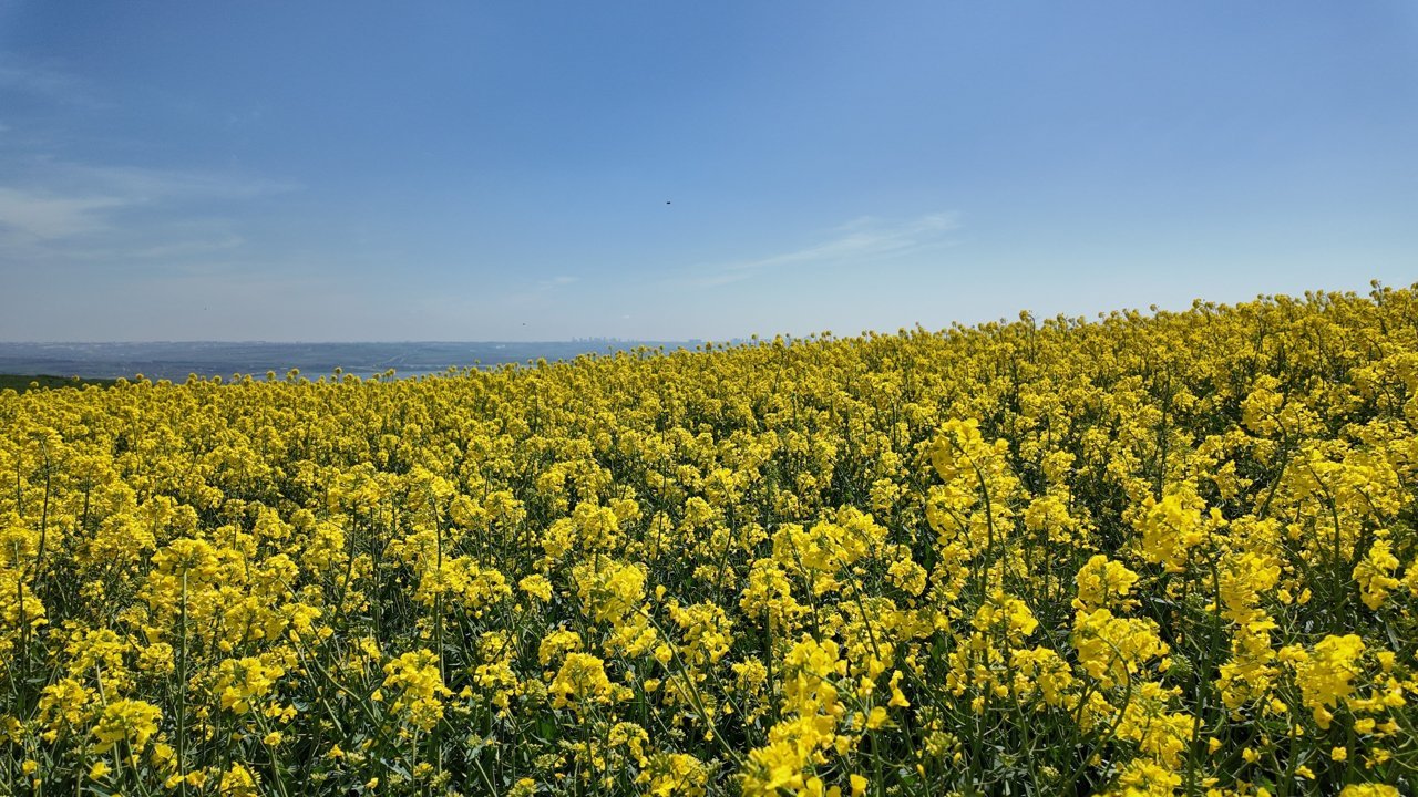 Havaların ısınmasıyla birlikte, İstanbul’un Trakya bölgesine yakın kanola bitkileri çiçek açmaya başladı. Görsel olarak göz kamaştıran kanola, yağıyla da üreticilerin yüzünü güldürüyor. Gıdadan kozmetiğe kadar kullanılan kanola yağının litre fiyatı ise 70 liradan alıcı buluyor. İstanbul’un Çatalca ve Büyükçekmece ilçelerinde yol kenarlarında açan kanola bitkileri havadan görüntülendi.