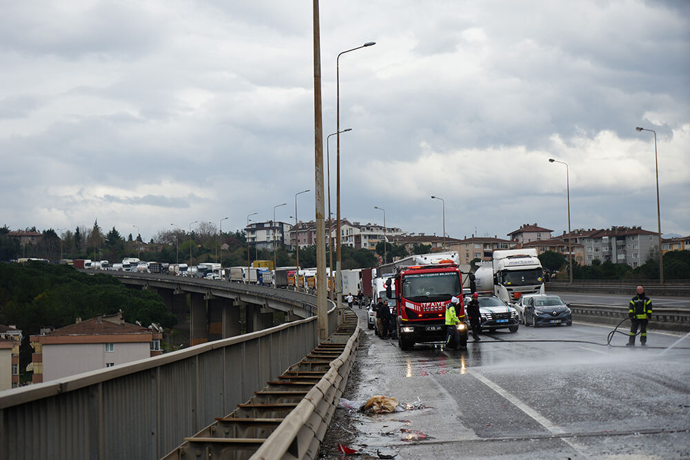 Yola saçılan imalat atıkları, itfaiye ve Karayolları ekiplerinin çalışmasıyla temizlendi. Kaza ve temizlik çalışmaları nedeniyle İstanbul istikametinde kilometrelerce araç kuyruğu oluşurken, otoyoldaki trafik akışı yaklaşık 1,5 saat süren çalışmaların ardından normale döndü. Kaçan sürücünün tespiti için çalışma başlatıldı.